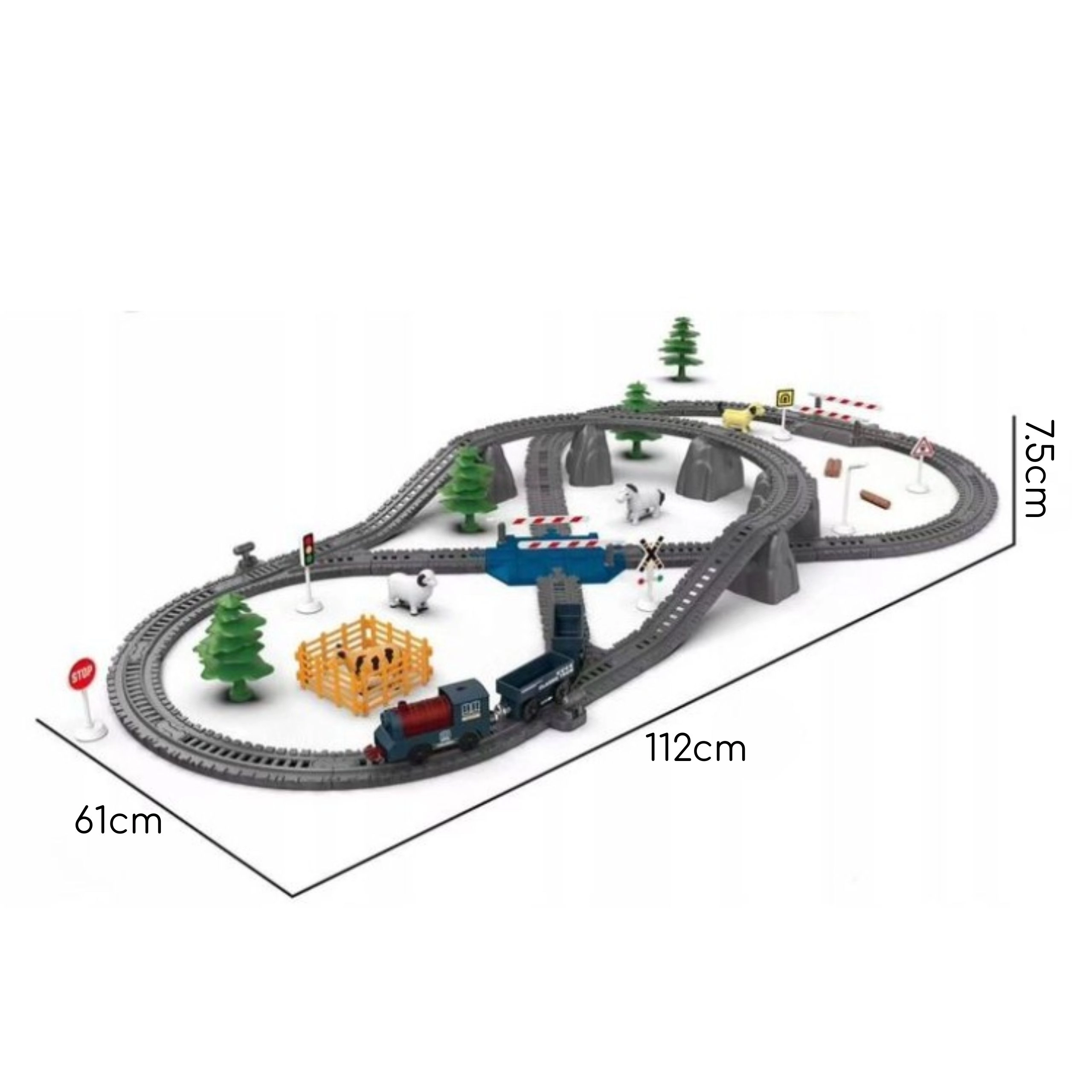 Scopri il mondo delle ferrovie a casa con la pista ferroviaria elettrica XXL del marchio WOOPIE. Il set a batterie offre lunghi binari, vari scambi e passaggi a livello per creare tracciati elaborati. La locomotiva si muove da sola, ha luce anteriore e suoni; il convoglio include vagoni merci, animaletti e ricchi accessori per un gioco realistico. Un giocattolo perfetto per bambini dai 3 anni che sviluppa creatività, motricità e immaginazione spaziale.