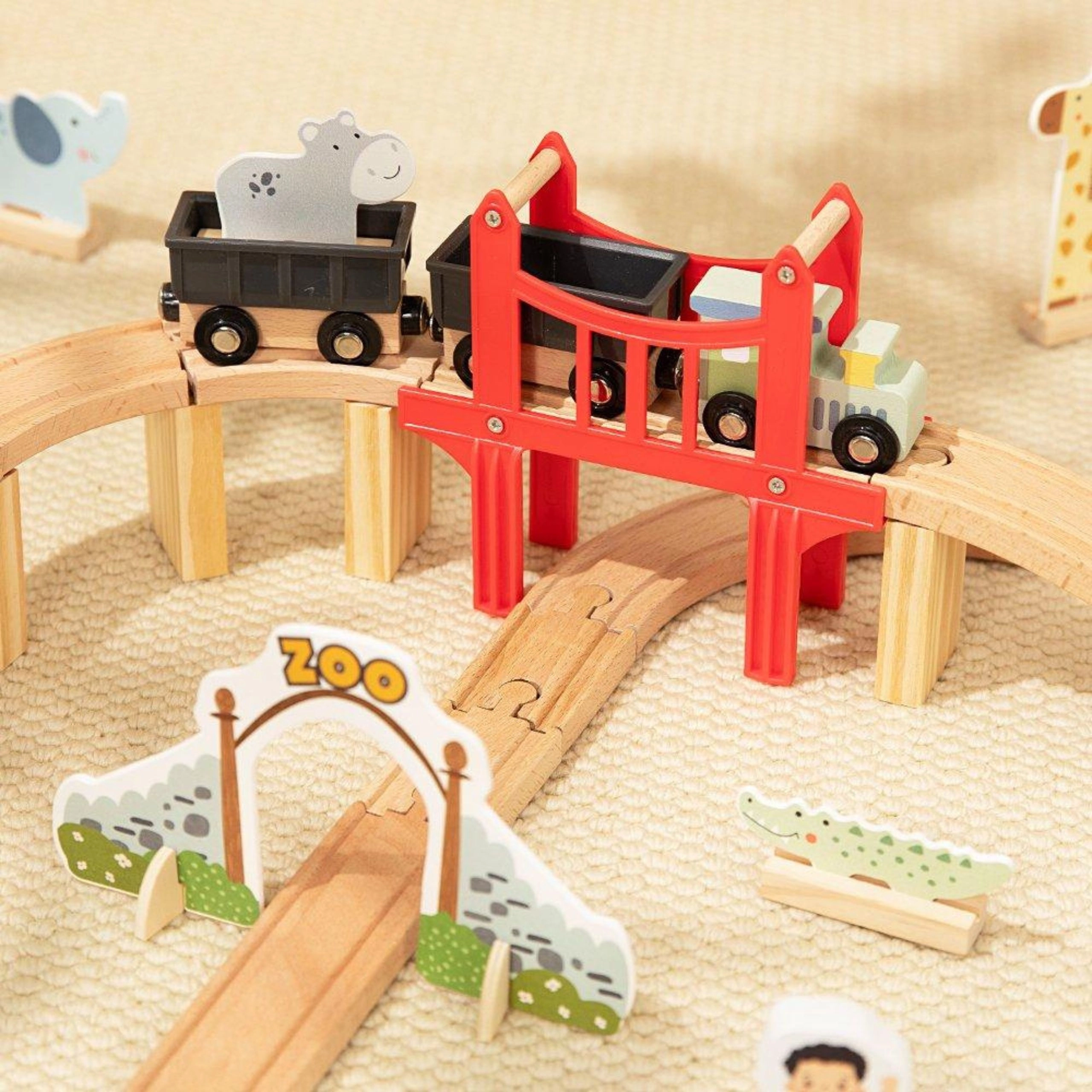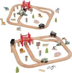 Il set è pensato per divertimento e sviluppo delle abilità: assemblare i binari, manipolare le figure e pianificare il tracciato favorisce creatività, coordinazione occhio–mano e pazienza. L’accurata lavorazione in legno garantisce resistenza e lunga durata; inoltre il set è compatibile con la maggior parte delle popolari piste ferroviarie in legno.
