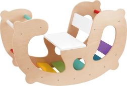 Con un semplice ribaltamento si trasforma il pezzo da dondolo a stabile ponte per camminare e bilanciarsi. I bambini allenano così la sicurezza nel movimento e rinforzano tutto il corpo.