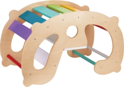 Questo elemento di gioco universale ispirato al metodo Montessori favorisce la motricità globale, la coordinazione e la fiducia in sé dei bambini. Possono arrampicarsi, scavalcare, dondolarsi e anche riposare: un solo elemento offre molti modi di gioco e movimento. Il legno naturale combinato con colori vivaci crea un ambiente invitante che stimola il gioco attivo e la creatività.