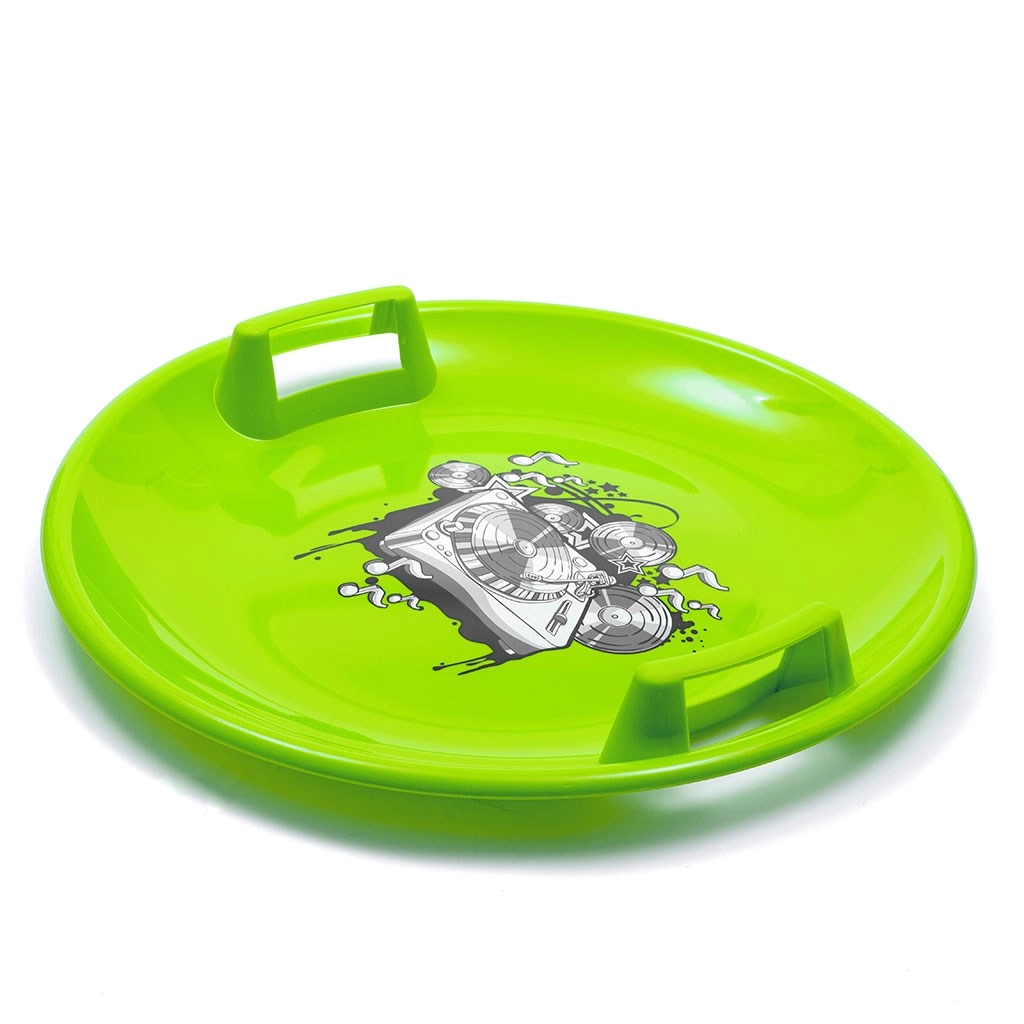 Il disco da neve BABY MIX verde con diametro di 60 cm offre una discesa veloce e divertente per bambini e adulti. È realizzato in plastica resistente con resistenza al gelo fino a -20 °C, ha maniglie integrate per una presa sicura e una portata fino a 50 kg. Perfetto per colline e piste battute.