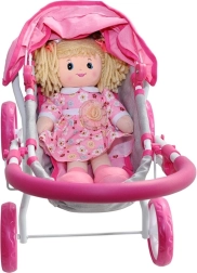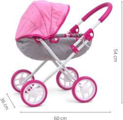 La pratica cappottina pieghevole protegge la bambola dal sole, nella culla non manca il morbido materassino per il comfort. Le ruote in foam riducono al minimo il rumore e garantiscono un movimento fluido, mentre il manico imbottito è piacevole al tatto. Il passeggino si ripiega in piano per un facile stoccaggio e trasporto.