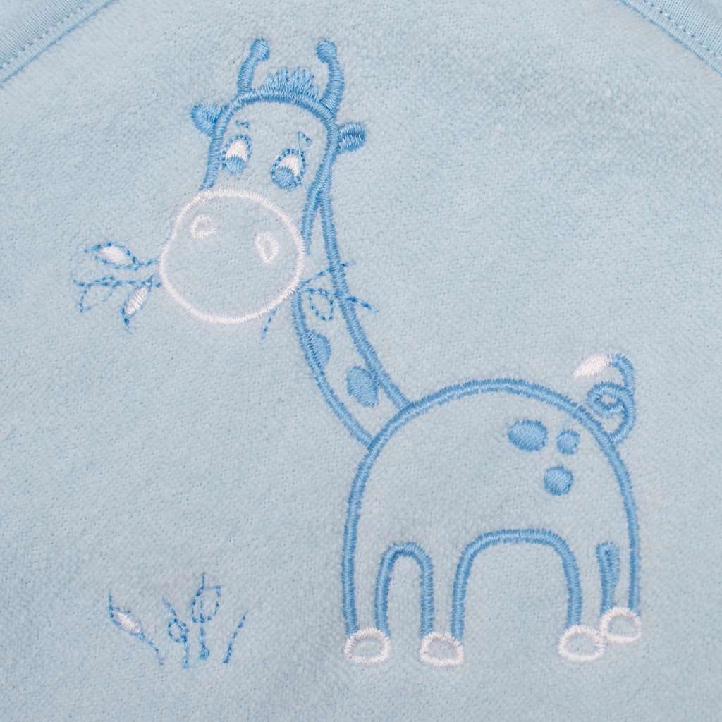 Morbido asciugamano per bambini con cappuccio in spugna, ideale per neonati e bambini più grandi. Tiene perfettamente al caldo dopo il bagnetto, si asciuga rapidamente, assorbe molto e il cappuccio protegge la testolina dal freddo. È decorato da un’allegria ricamo con giraffa.