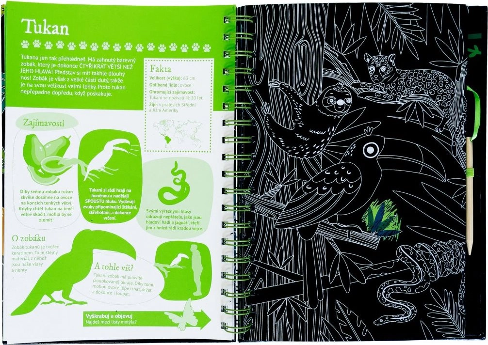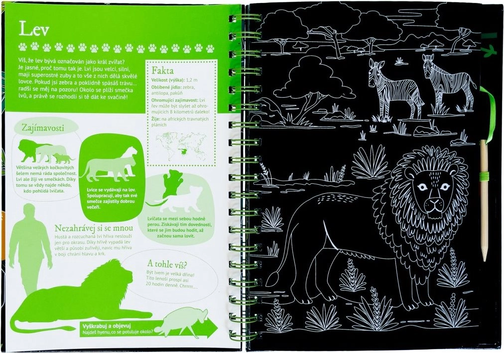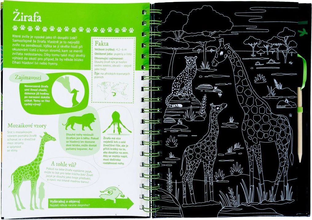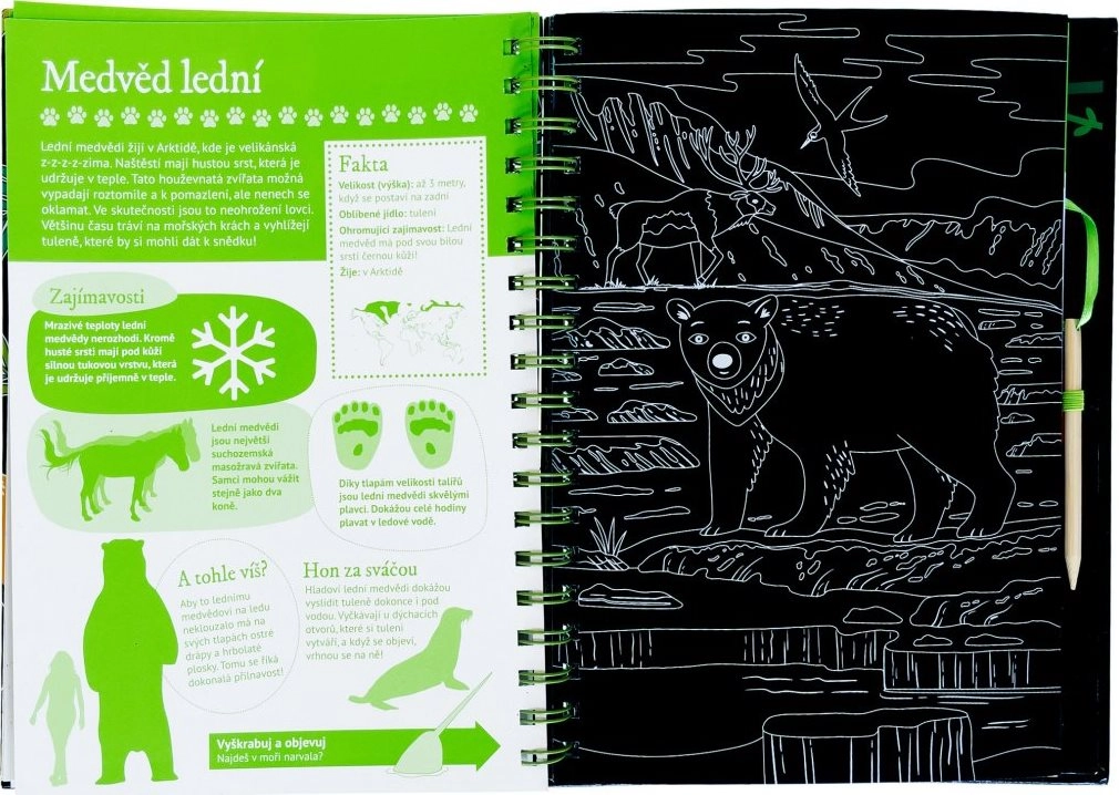 Questo ingegnoso libro è diviso in due parti: la prima offre una panoramica degli animali con tante curiosità e fatti, accompagnati da illustrazioni da grattare che conquistano per la loro giocosità. La seconda parte propone attività interattive come quiz, abbinamenti, ricerca, disegno e completamento, grazie alle quali i bambini mettono in pratica le nuove conoscenze e si divertono per ore.
