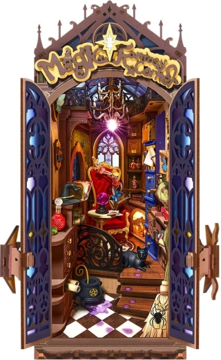 Il set è realizzato con materiali di qualità, sicuri e atossici. Grazie alla progettazione accurata, il modello è adatto sia come ferma-libri sia come decorazione da scaffale autonoma. L’illuminazione LED crea la sera un’atmosfera accogliente e misteriosa, mettendo in risalto ogni dettaglio in miniatura.
