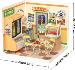 Scopri il fascino dello street food con una miniatura di ristorante ricca di colori, insegne iconiche e dettagli autentici. Troverai un frigorifero con bevande, banco grill, cuociriso e una selezione di salse: tutto realizzato con cura fin nel più piccolo particolare. La luce LED integrata enfatizza l'atmosfera del bistrot notturno e trasforma il modello in una decorazione di stile.