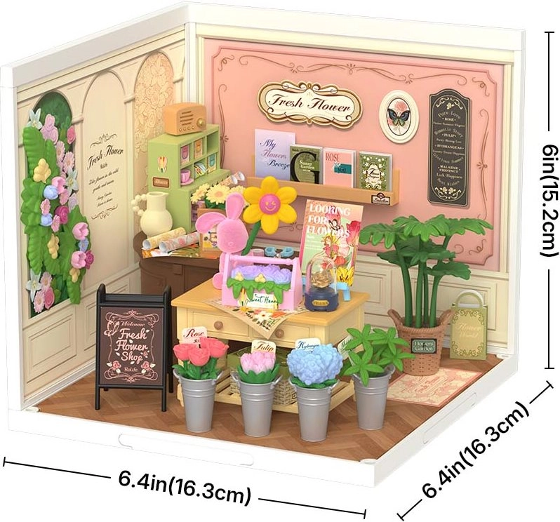 Scopri la magia delle miniature con il set creativo Rolife casa in miniatura fai-da-te: fioraio. Nella confezione trovi tutto il necessario per creare una piccola bottega ricca di fiori colorati, dettagli di stile e un’illuminazione LED funzionale che dona al modello un’atmosfera realistica. Perfetto come regalo, progetto rilassante o decorazione originale per lo scaffale.