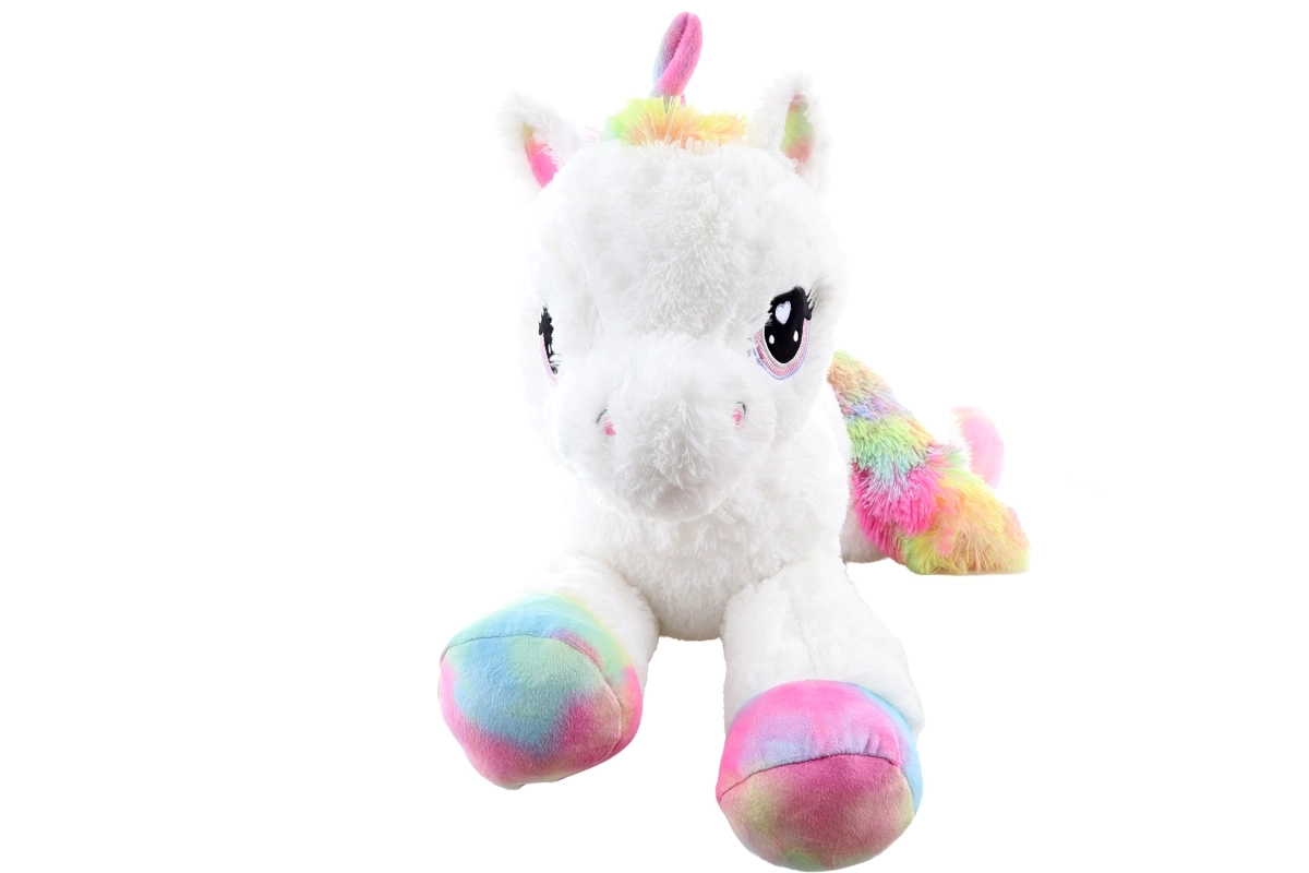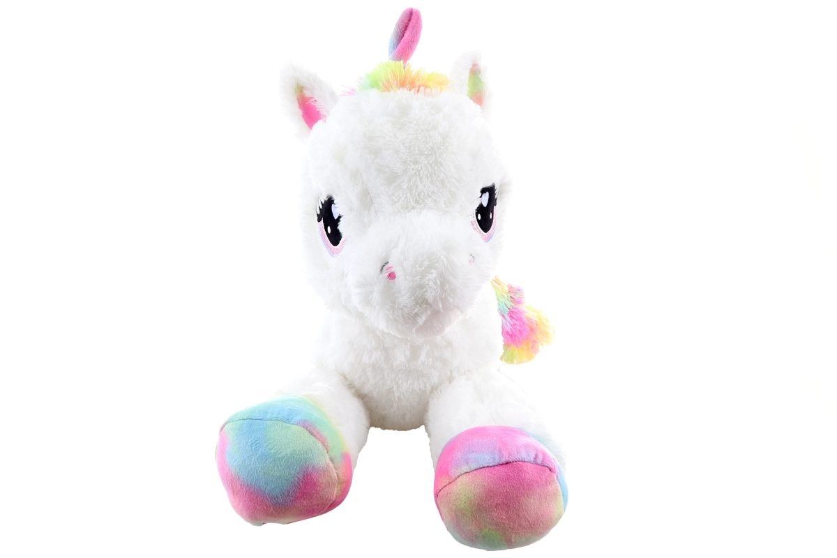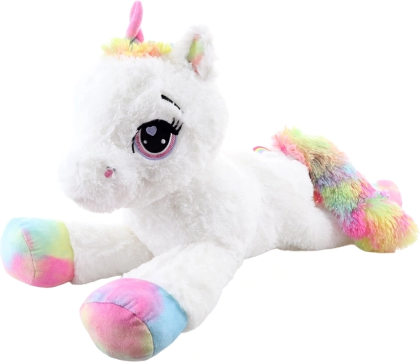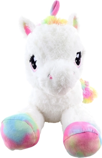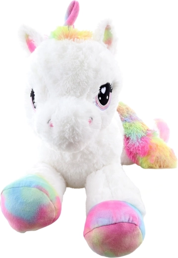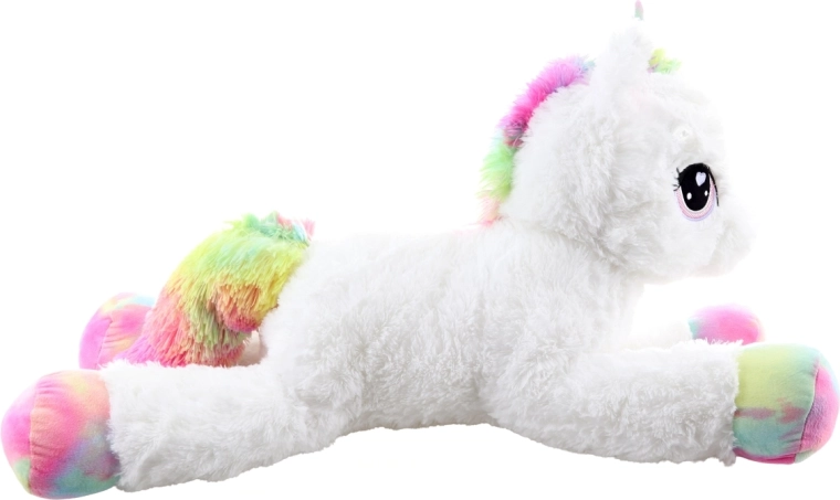 Il dolce unicorno di peluche lungo 80 cm farà felici bambini e adulti. È straordinariamente morbido, piacevole al tatto e ideale per coccolarsi. I dettagli arcobaleno donano al giocattolo un aspetto magico, i grandi occhi ricamati e la fattura delicata garantiscono un uso sicuro da 0+.