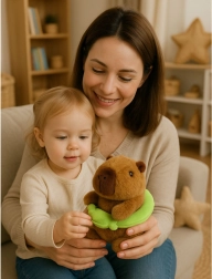 Questa capibara di peluche marrone è realizzata in morbido peluche di alta qualità e imbottita con materiale ipoallergenico per il massimo comfort e sicurezza durante il gioco e il sonno. Il salvagente verde rimovibile con ranocchia sorridente stimola il gioco creativo e sviluppa la fantasia dei bambini.