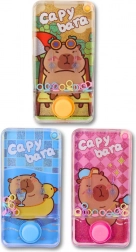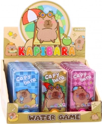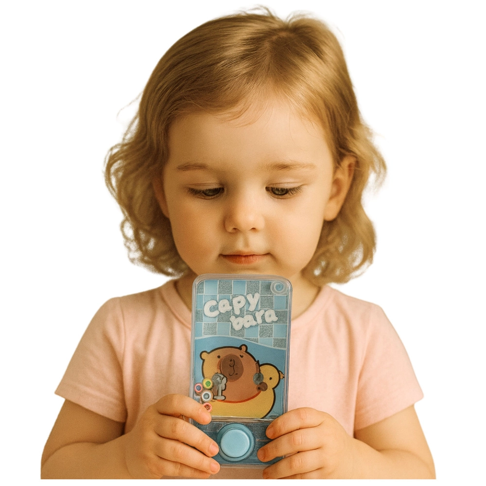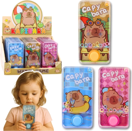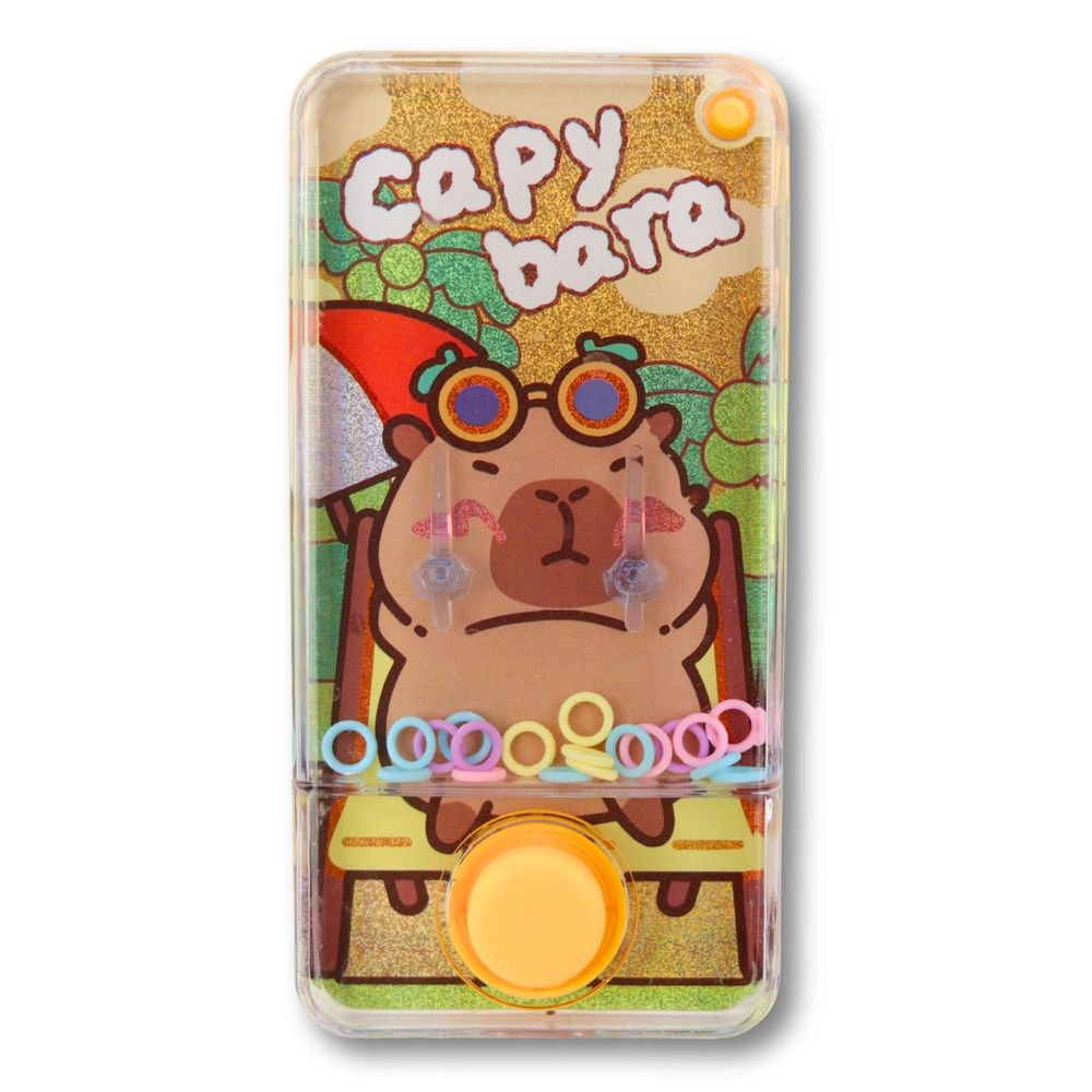 Divertente gioco ad anelli ad acqua con motivo della capibara che piacerà a bambini e adulti. Basta premere il pulsante e il getto d’acqua solleva gli anelli colorati sui piolini. Dimensioni compatte 12,5 × 6,5 × 2 cm, senza batterie, leggero e ideale per i viaggi. Disponibile in tre colori – blu, arancione, rosa.