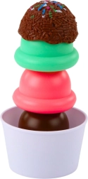 Costruisci il tuo bar del gelato! I bambini possono combinare i colori, sovrapporre le palline, servire nei bicchierini, nei coni e come ghiaccioli. Il set è ideale per il gioco individuale e di gruppo, sviluppa creatività, collaborazione e coordinazione.