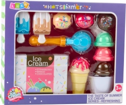 Creativo set gelato per bambini con 14 pezzi che offre ore di divertimento nella preparazione di gelati, dessert e dolci prelibatezze. Grazie alla plastica leggera e resistente, alle forme sicure e ai colori realistici, stimola fantasia, motricità fine e gioco di ruolo da gelateria.