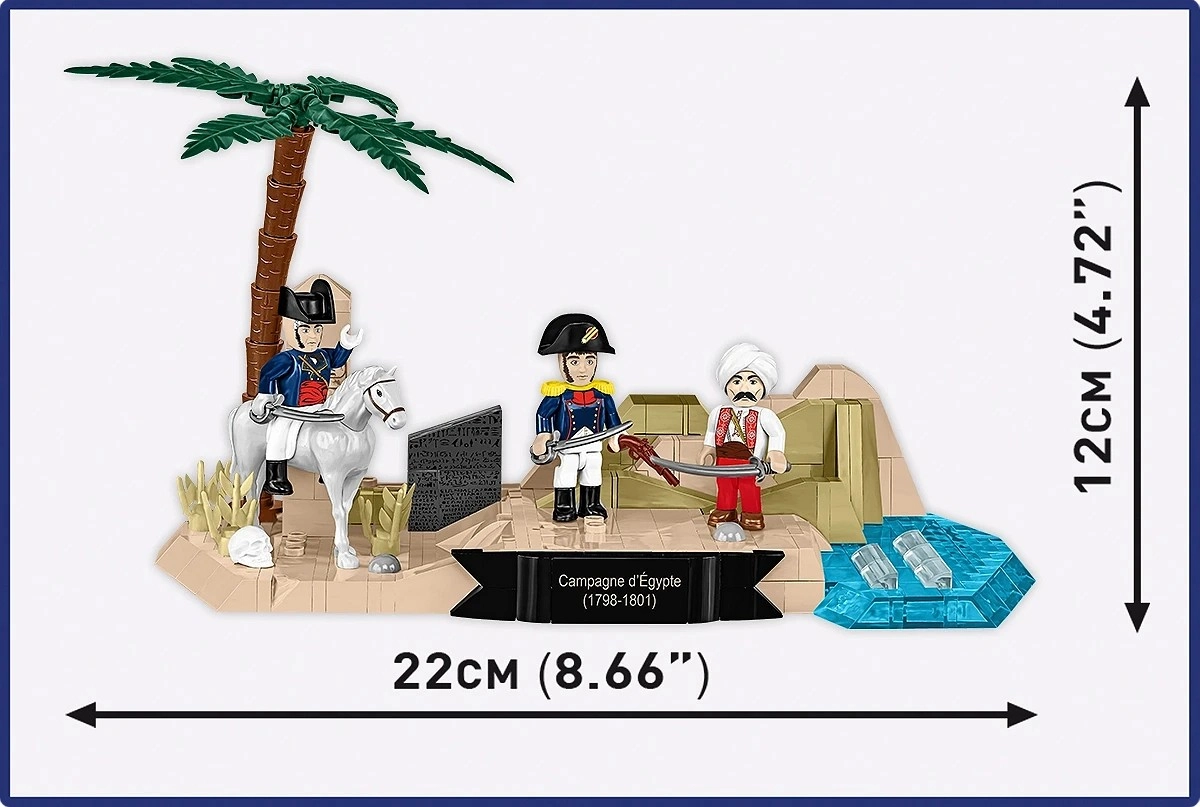 Scopri l’esotico capitolo della storia napoleonica con il set COBI Campagne d’Égypte (1798–1801). Crea un mini diorama con deserto, palma e la Stele di Rosetta, arricchito da minifigure dettagliate di ufficiali francesi e da un mamelucco a cavallo. Tutti gli elementi presentano stampe di alta qualità senza adesivi, le istruzioni intuitive rendono la costruzione facile e il set è compatibile con altri mattoncini.