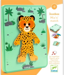 Djeco Inzebox Mix and Match è un originale puzzle magnetico che permette ai bambini di combinare teste, corpi e zampette di diversi animali. Da un solo set nascono decine di combinazioni allegre, dal ghepardo fino al tenero panda. Il gioco stimola creatività, coordinazione occhio–mano e motricità fine.