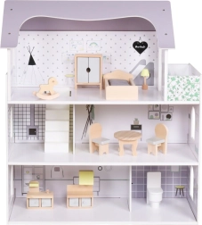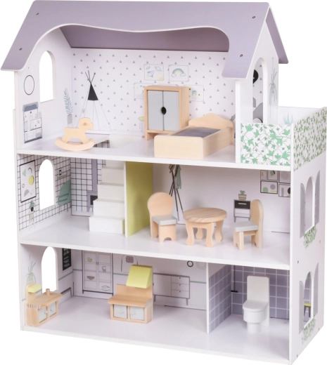 Questa elegante casa delle bambole diventerà il fulcro della cameretta. Tre ampi piani con pareti stampate e finestre ad arco offrono spazio sufficiente per scenette fantasiose, spostamento dei mobili e storie quotidiane. Il fronte aperto assicura un gioco confortevole da più lati.