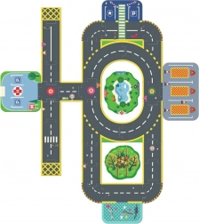 • Elementi di traffico realistici – corsie, passaggi pedonali, segnali, rotonda, eliporto.