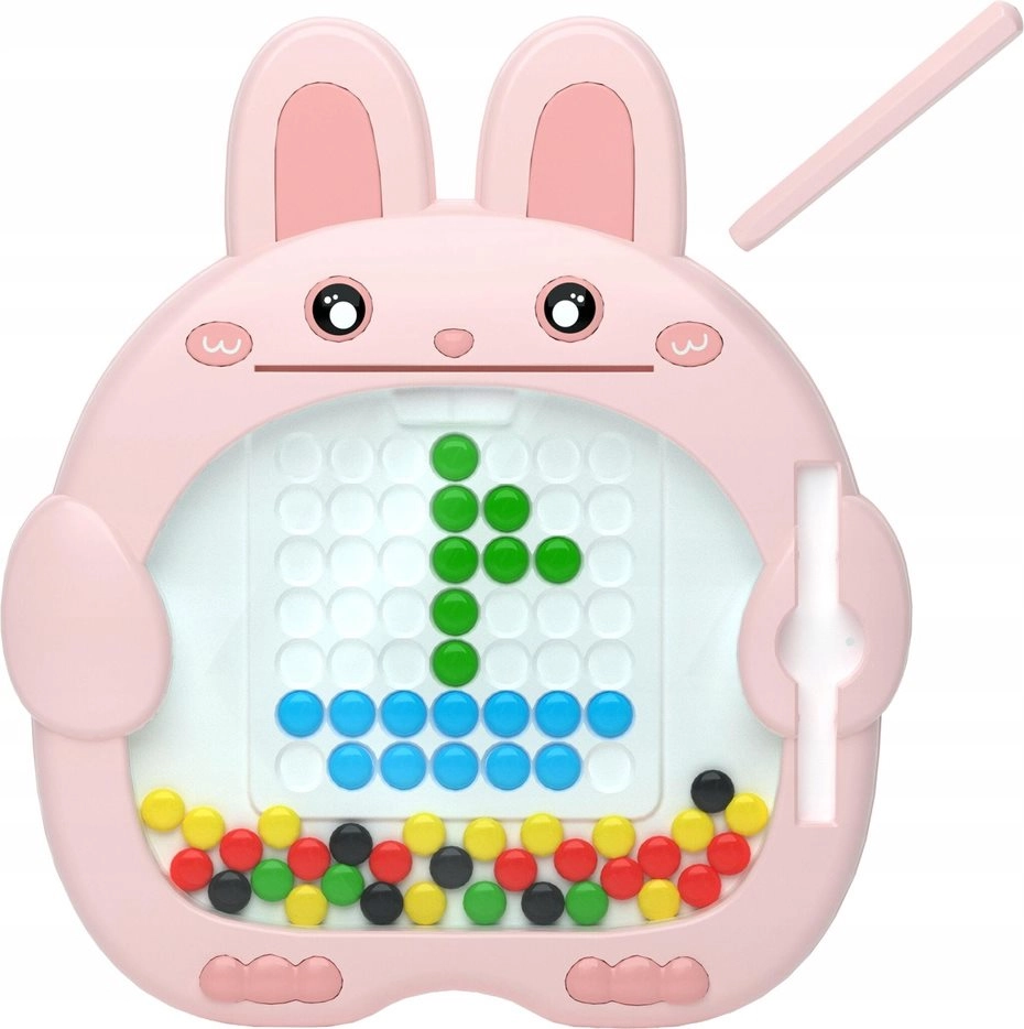 Questa creativa lavagna magnetica a forma di simpatico coniglietto intrattiene i bambini per ore. La penna magnetica solleva e sposta facilmente i bottoncini colorati nella griglia, così i bambini possono creare immagini passo dopo passo seguendo i modelli inclusi o liberamente.