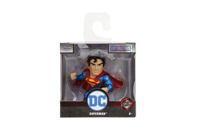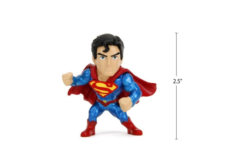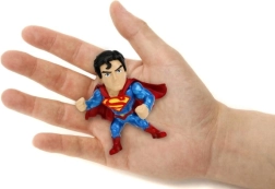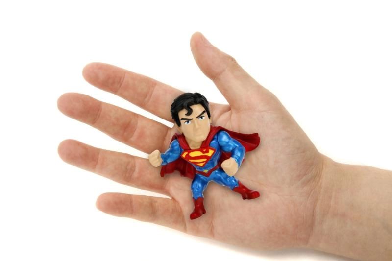 Tuta blu, mantello rosso e logo giallo “S” – la figurina riproduce fedelmente l’aspetto di SUPERMAN in una dinamica posa da combattimento.