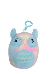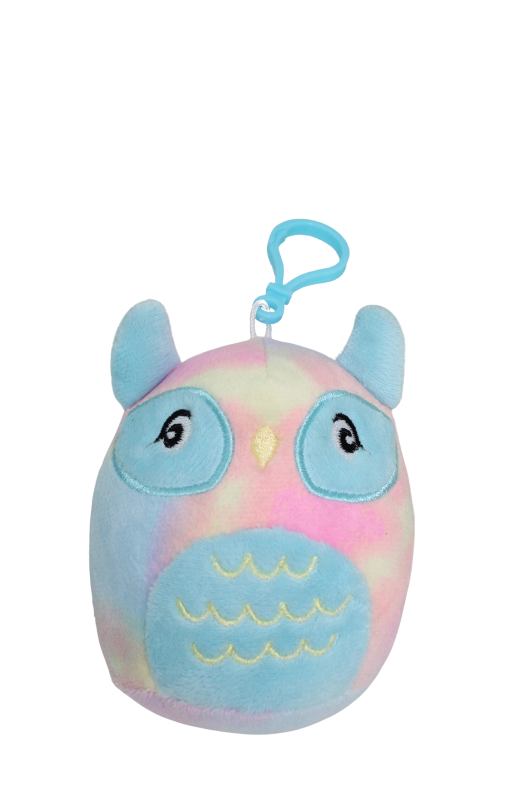 La civetta pastello con peluche morbido e clip a cuoricino rallegra sia sul passeggino che sullo zaino. Ricami sicuri e materiali soffici per coccole serene.