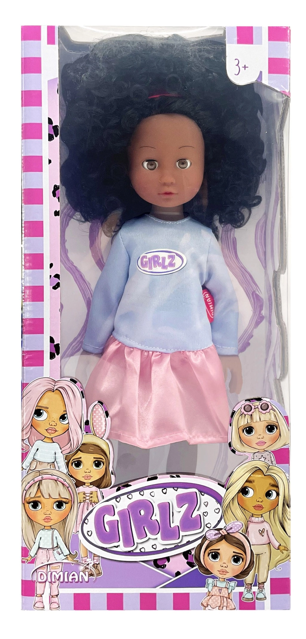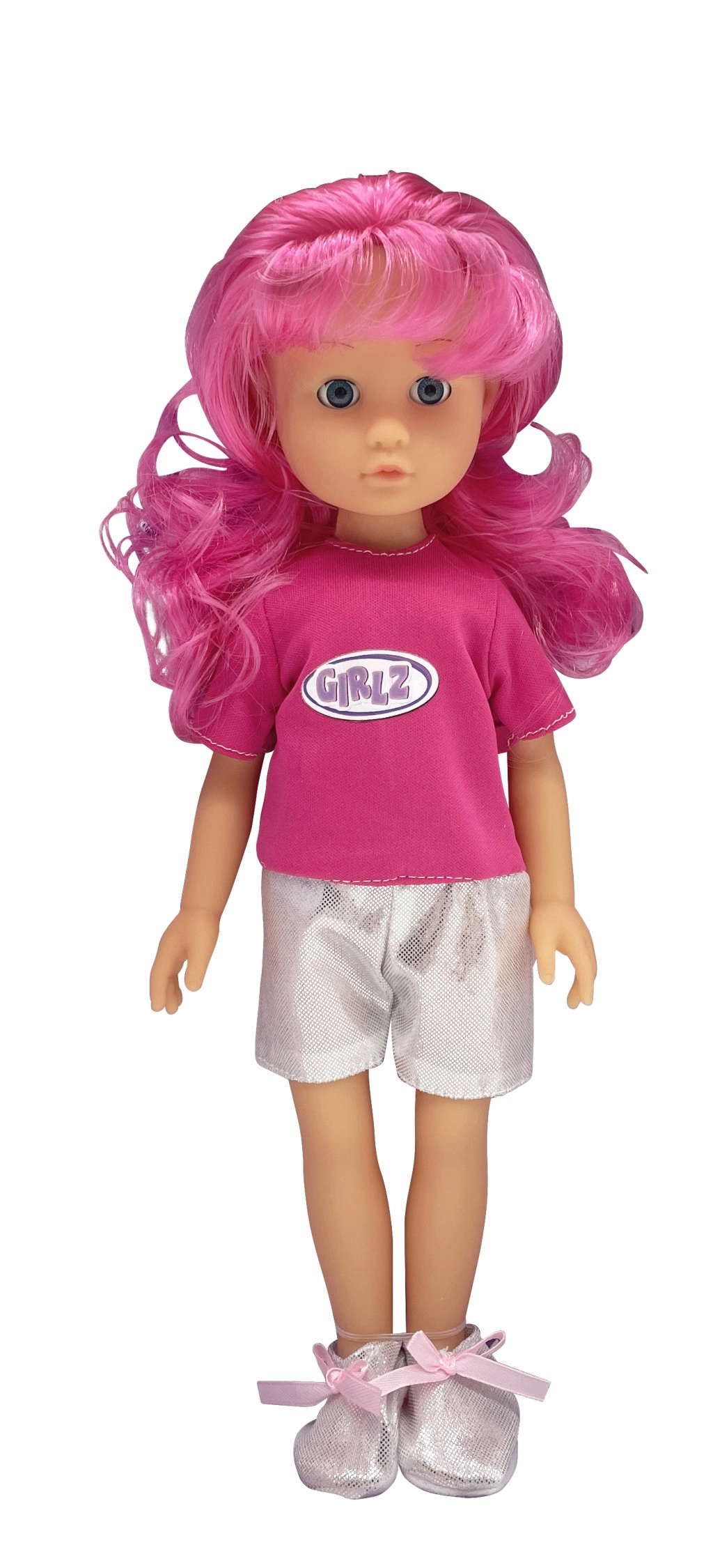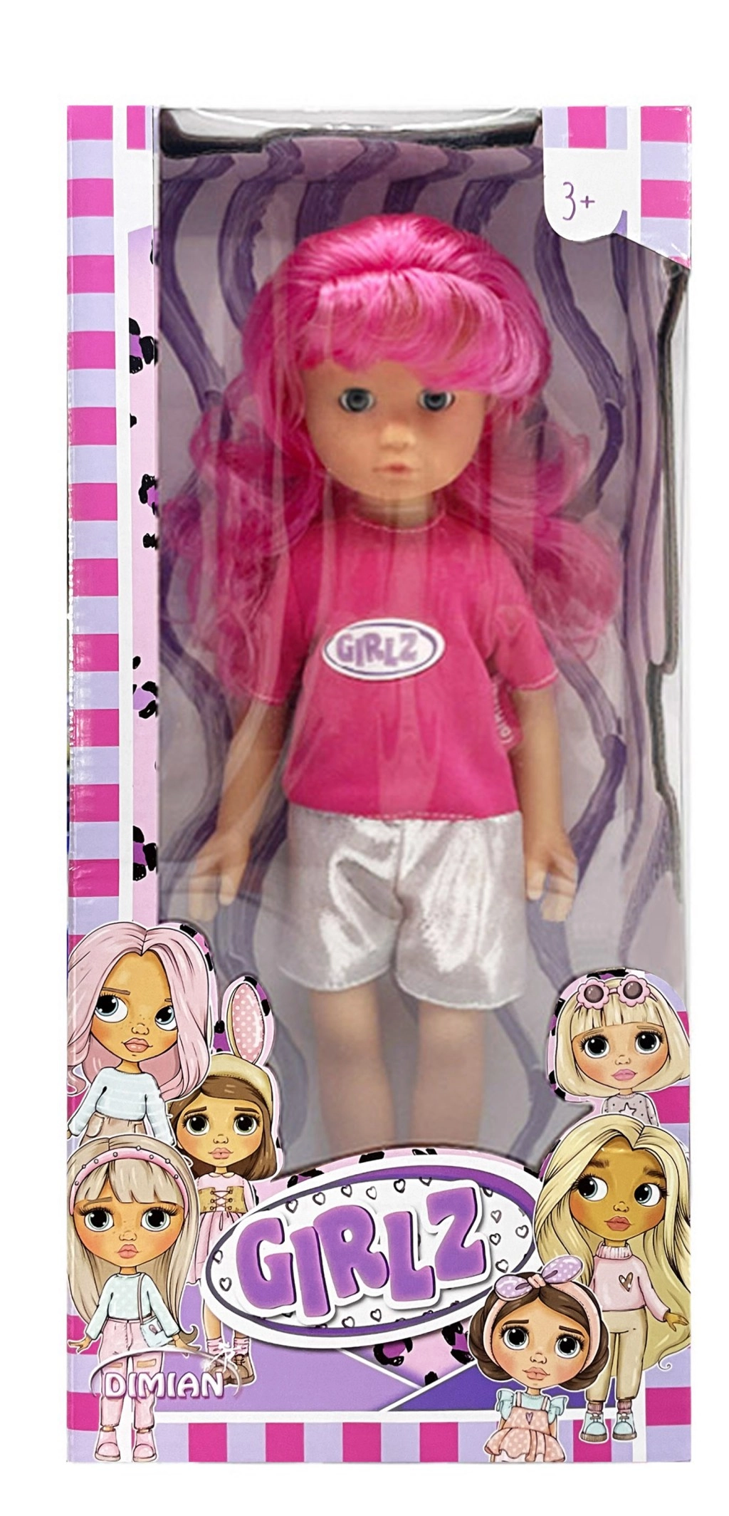 Disponibili quattro varianti di moda che colpiscono per colori e accessori: la versione dai capelli rosa GIRLZ con maglietta e shorts argentati, la bionda GRLZ con top rosa e gonna gialla, la variante dai capelli viola con gonna lucida e scarpe eleganti, e la bambola dalla pelle scura con capelli ricci in abbinamento top azzurro chiaro e gonna rosa.
