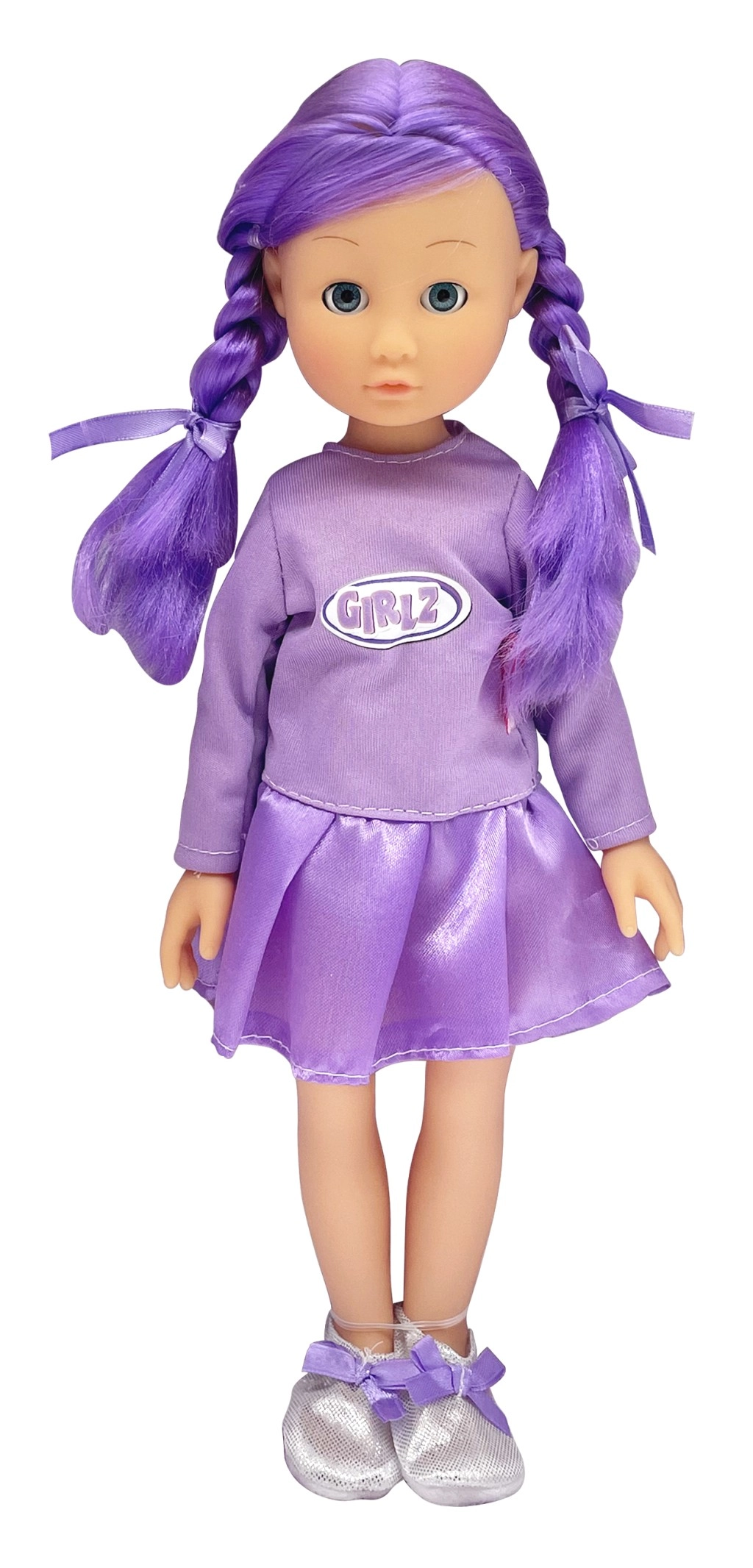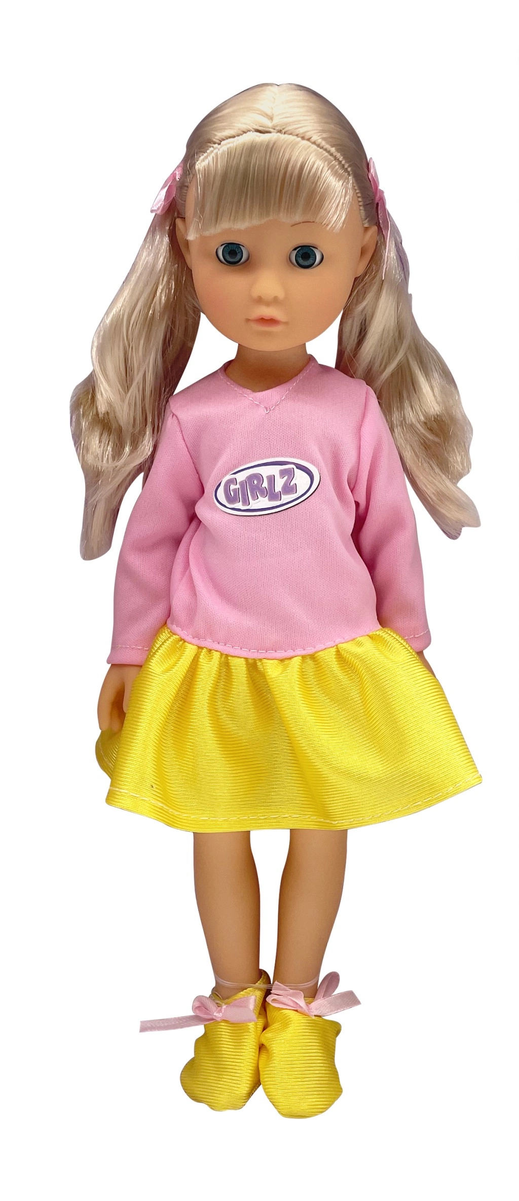 Scegli tra diversi look: capelli rosa, biondi, viola o ricci neri – ogni versione ha un outfit unico e scarpine coordinate.