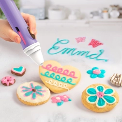 Trasformate le dolci bontà in piccole opere d’arte. La penna al cioccolato permette ai bambini di scrivere, disegnare e creare varie forme con cioccolato fuso. Grazie all’impugnatura ergonomica e alla punta precisa, è comoda da usare anche per le mani più piccole, e il cioccolato a rapido indurimento assicura un effetto immediato su biscotti, cupcake, frutta e altre delizie.