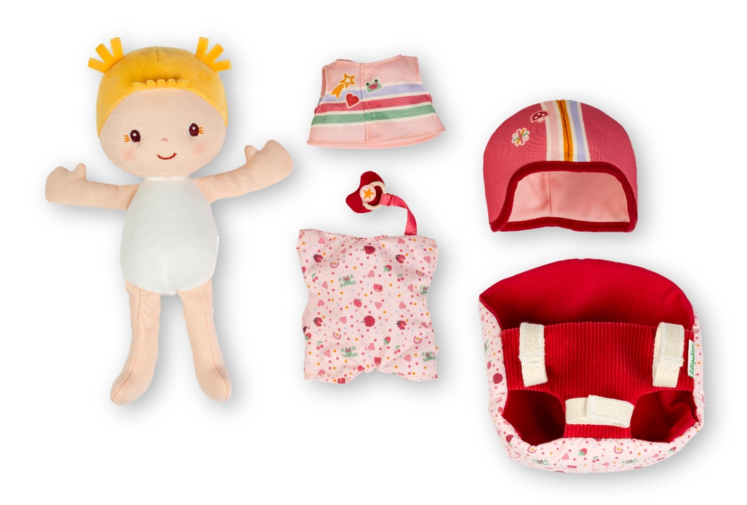 La bambola di stoffa Lena è la compagna ideale per le gite. Grazie al morbido corpicino in tessuto è perfetta per le coccole e stimola i giochi di ruolo – i bambini possono mettere la bambola nel seggiolino rivolta verso di loro e “prendersene cura” durante la corsa. Il ciuccio magnetico si applica facilmente e resta ben saldo, così non si perde durante le uscite.
