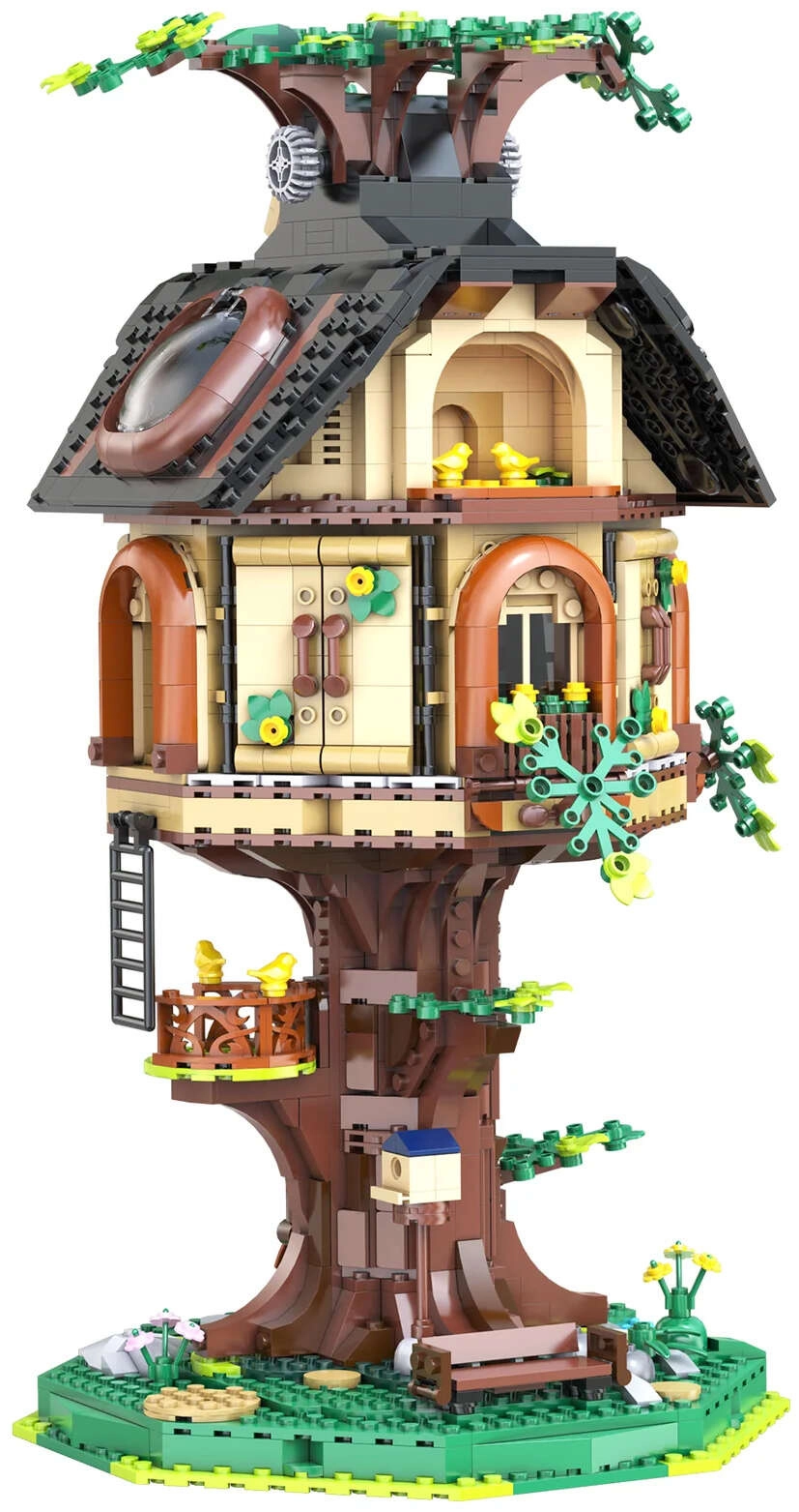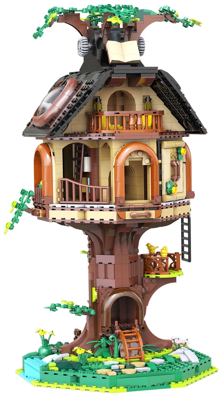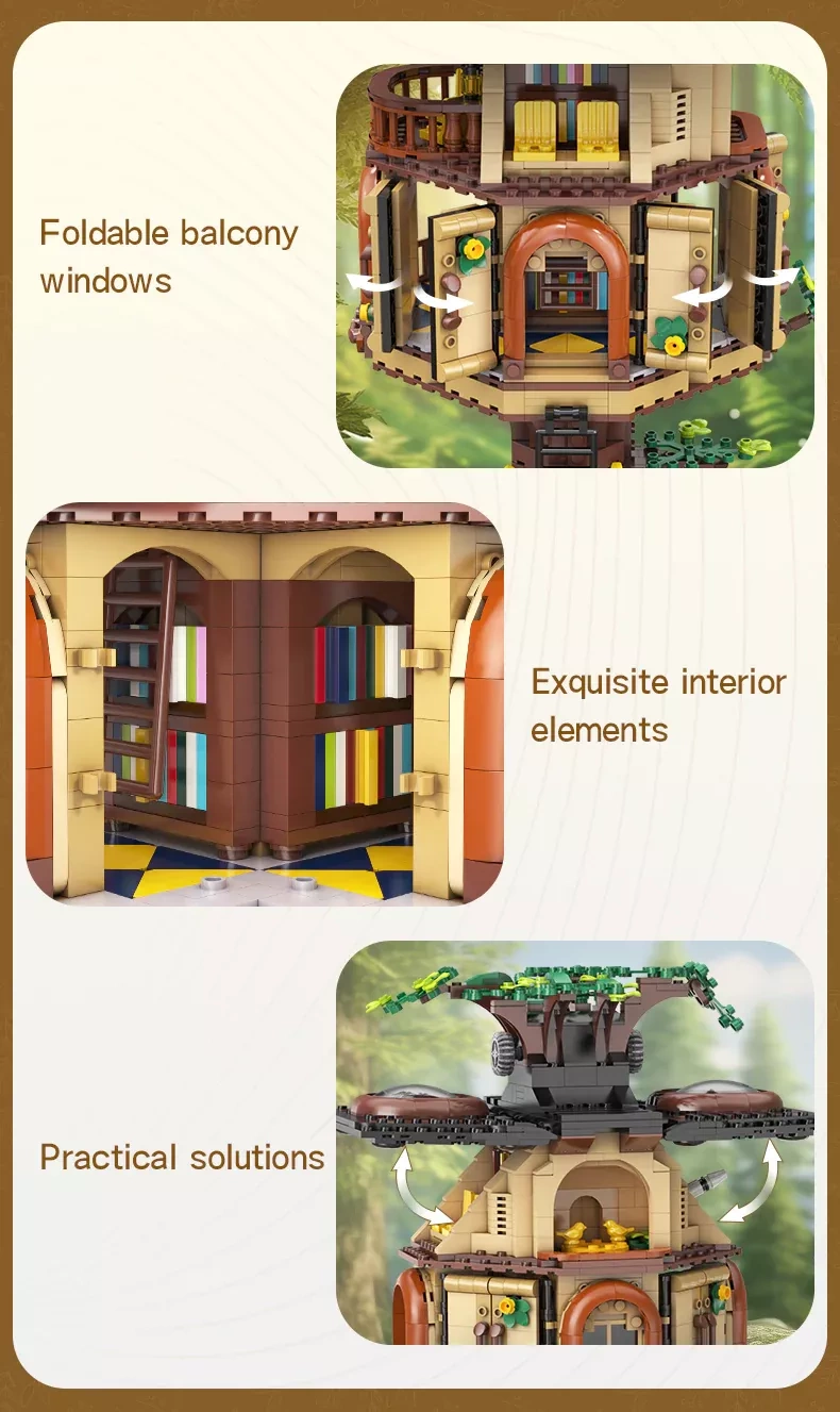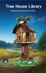 Costruisci un’originale biblioteca nella casa sull’albero con disposizione a due piani: al piano terra si trova la biblioteca con scaffali, finestre e scale; al piano superiore un’accogliente sala di lettura con telescopio. L’albero sorge in una pittoresca radura con fiori e casetta per uccelli; non mancano il tetto apribile e un balcone per l’osservazione degli uccelli.
