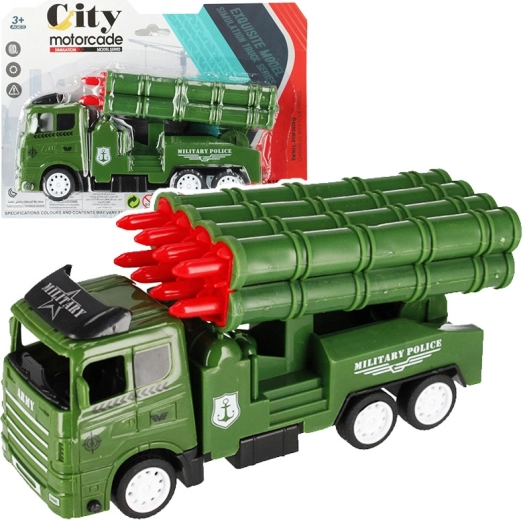 Divertente auto militare con meccanismo pull-back per una guida dinamica senza batterie. Dimensioni compatte 19 × 10 × 6 cm, struttura resistente e facile da controllare per bambini da 3 anni. Il prezzo si riferisce a 1 pezzo.
