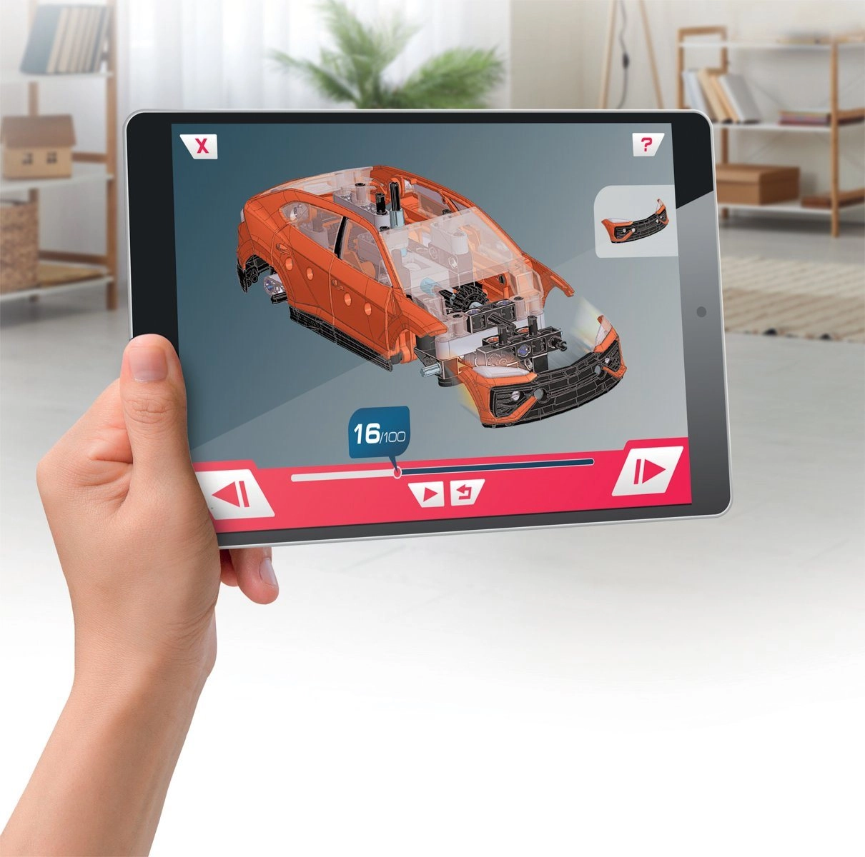 Per un’esperienza ancora più coinvolgente è possibile scaricare gratuitamente l’app SCIENCE & PLAY BUILD tramite il QR code sulla confezione. Per il funzionamento sono necessarie 4× AA (1,5 V) batterie, non incluse nella confezione.