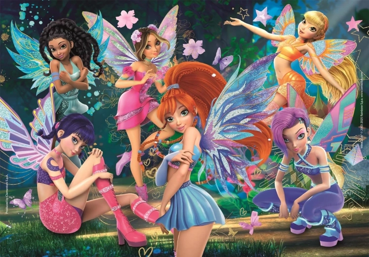 Puzzle per bambini con tema WINX del marchio CLEMENTONI che offre 104 pezzi per un divertente assemblaggio e lo sviluppo della motricità fine. Una volta completata, l’immagine misura ca. 38 × 27 cm, ideale per essere incorniciata o ricomposta più volte.