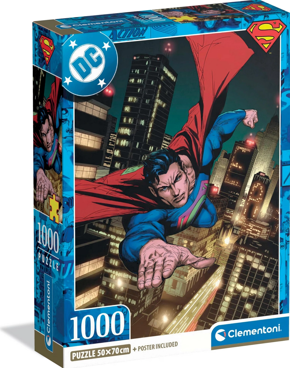 Goditi un puzzle di qualità con l’eroe iconico della DC. Il puzzle Clementoni con il motivo Superman – Il Protettore offre 1000 pezzi, stampa precisa e dimensioni finali 50 × 70 cm. Perfetto per rilassarsi, concentrarsi e per i collezionisti di temi a fumetti.