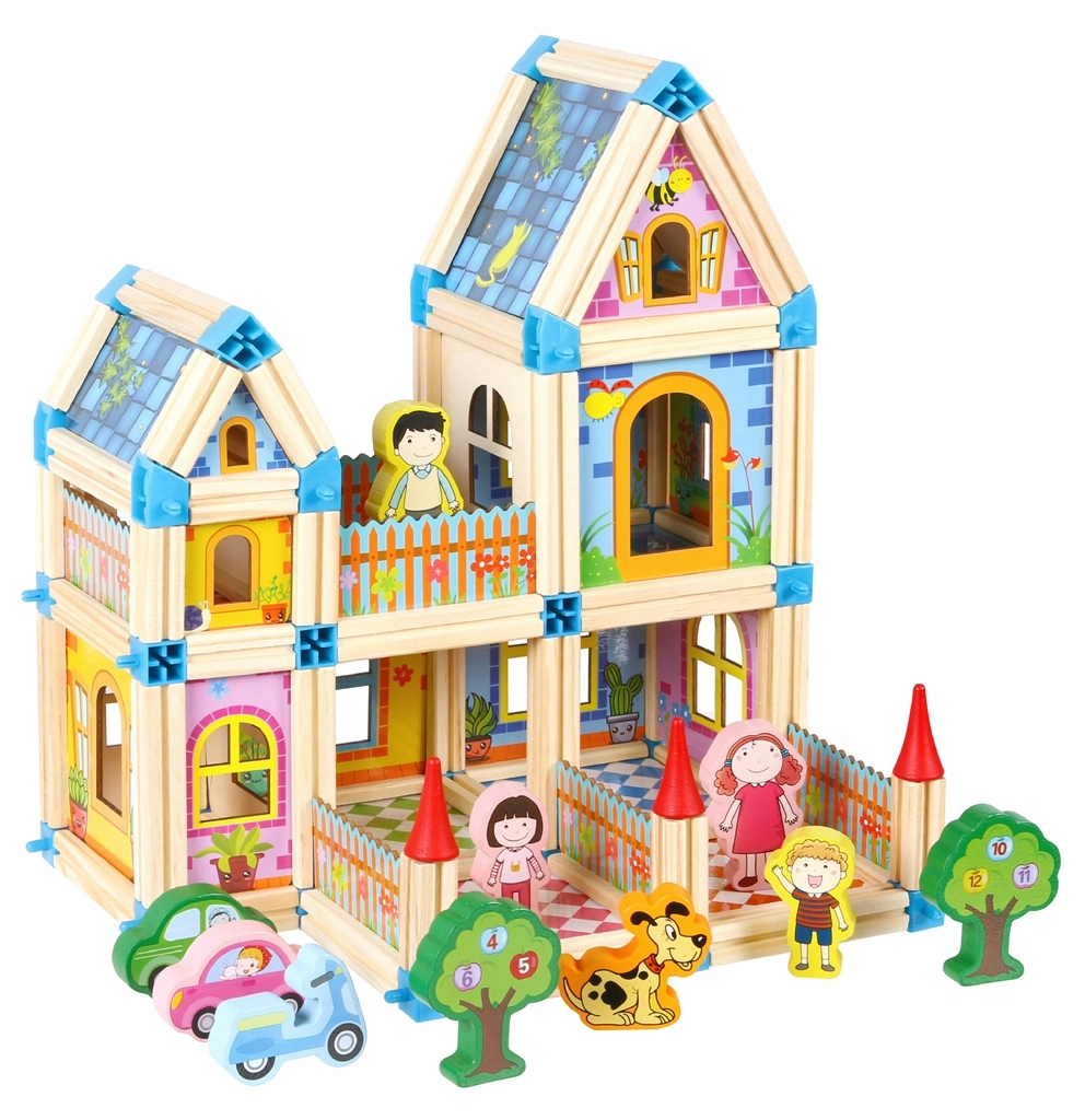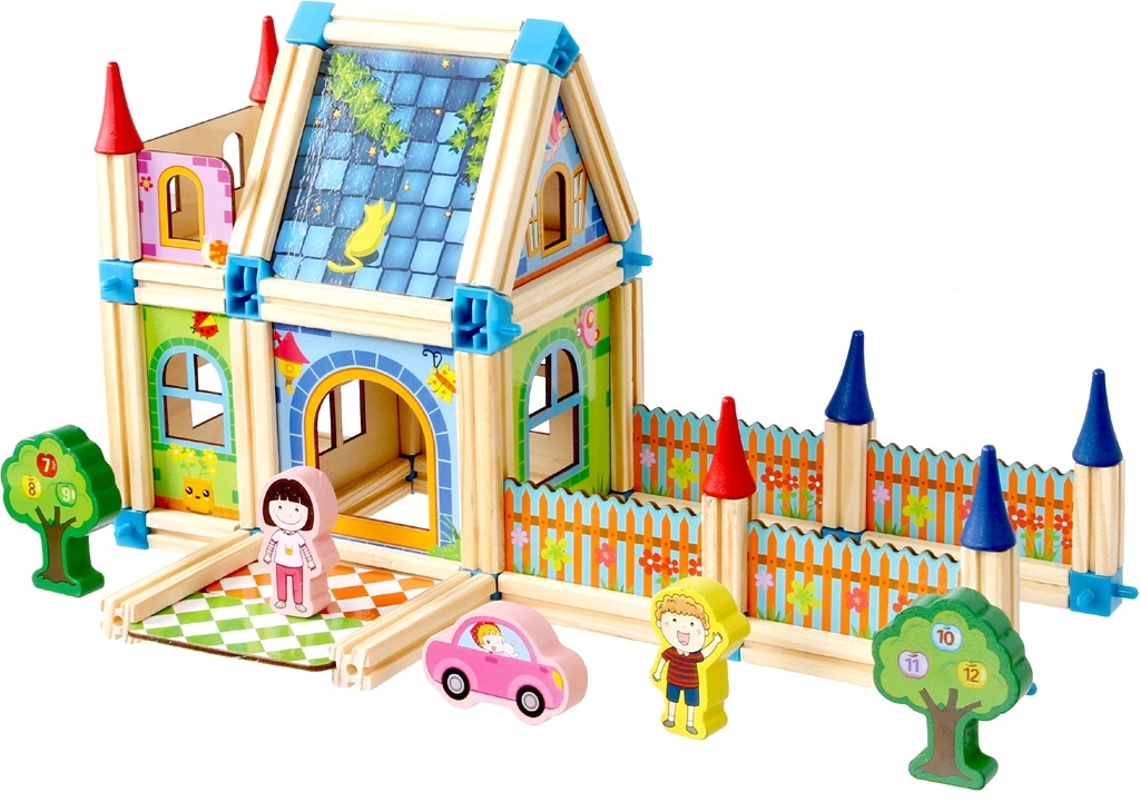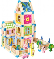Questo set creativo è progettato per crescere con i tuoi bambini. I robusti pezzi in legno, combinati con connettori in plastica, permettono di costruire strutture stabili e versatili – da piccole casette fino a castelli monumentali. I contrasti di colore e le diverse forme stimolano il pensiero logico e la percezione spaziale.