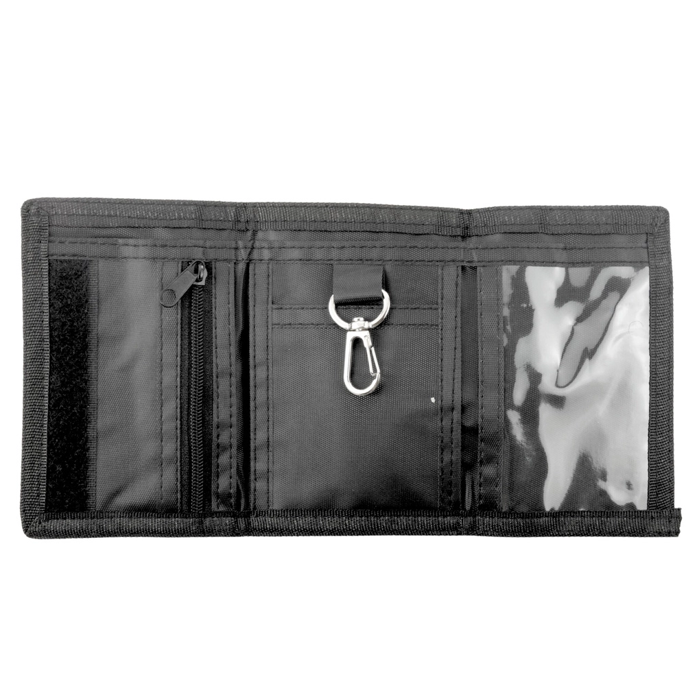 La tasca con zip per le monete, lo scomparto per le banconote, la finestra trasparente per tessera e il gancio/moschettone per le chiavi garantiscono ordine e accesso rapido.