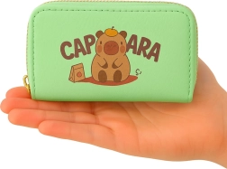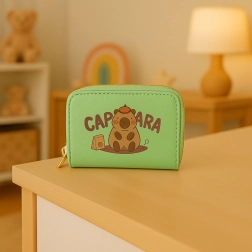 Compatto portafoglio verde con un simpatico motivo di capibara, dotato di due scomparti separati con zip e interno a fisarmonica per organizzare in modo chiaro carte, banconote e monete. Materiale resistente con texture simile alla pelle, zip dorate e dimensioni pratiche lo rendono l’accessorio ideale per bambini, adolescenti e adulti.