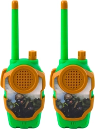 Divertente set di due walkie‑talkie per bambini in stile militare che offre ore di azione a casa e all’aperto. Facili da usare con il pulsante PTT, design leggero e compatto adatto alle mani dei bambini e portata di circa 10 m per favorire gioco di squadra, comunicazione e missioni avventurose. Il corpo in plastica resistente nei colori verde‑arancione e l’aspetto realistico stimolano il gioco creativo “ai soldati”.