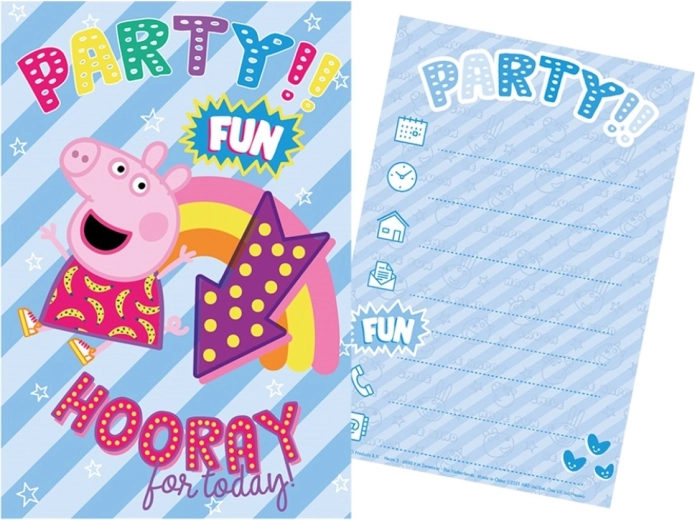 Rendi divertenti i preparativi della festa! Il set include 5 inviti splendidamente illustrati con l’amatissima Peppa Pig e 5 buste coordinate, così potrai invitare tutti i tuoi amici a una festa indimenticabile.