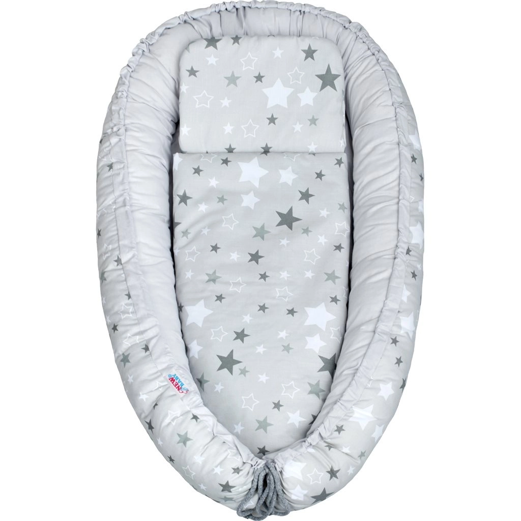 Offri al tuo neonato un ambiente sicuro e morbido con il nido NEW BABY con piumini nel design a stelline bianco‑grigie. Ideale dalla nascita fino a 3 mesi, con bordo rialzato morbido, imbottitura anallergica e rivestimento traspirante in cotone per il massimo comfort e un sonno tranquillo.