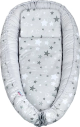 Il nido lussuoso per bambini NEW BABY dona al neonato una sensazione di calma e sicurezza grazie ai bordi morbidi e rialzati e alla piacevole superficie in cotone. Ideale per il riposo, il sonno e per un comodo cambio pannolino a casa e in viaggio. L’elegante look bianco‑grigio con stelline si abbina perfettamente a qualsiasi corredo.
