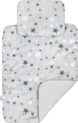 Il set include piumino e cuscinetto nello stesso design. Il piumino può essere utilizzato anche separatamente nel passeggino o nella culla.