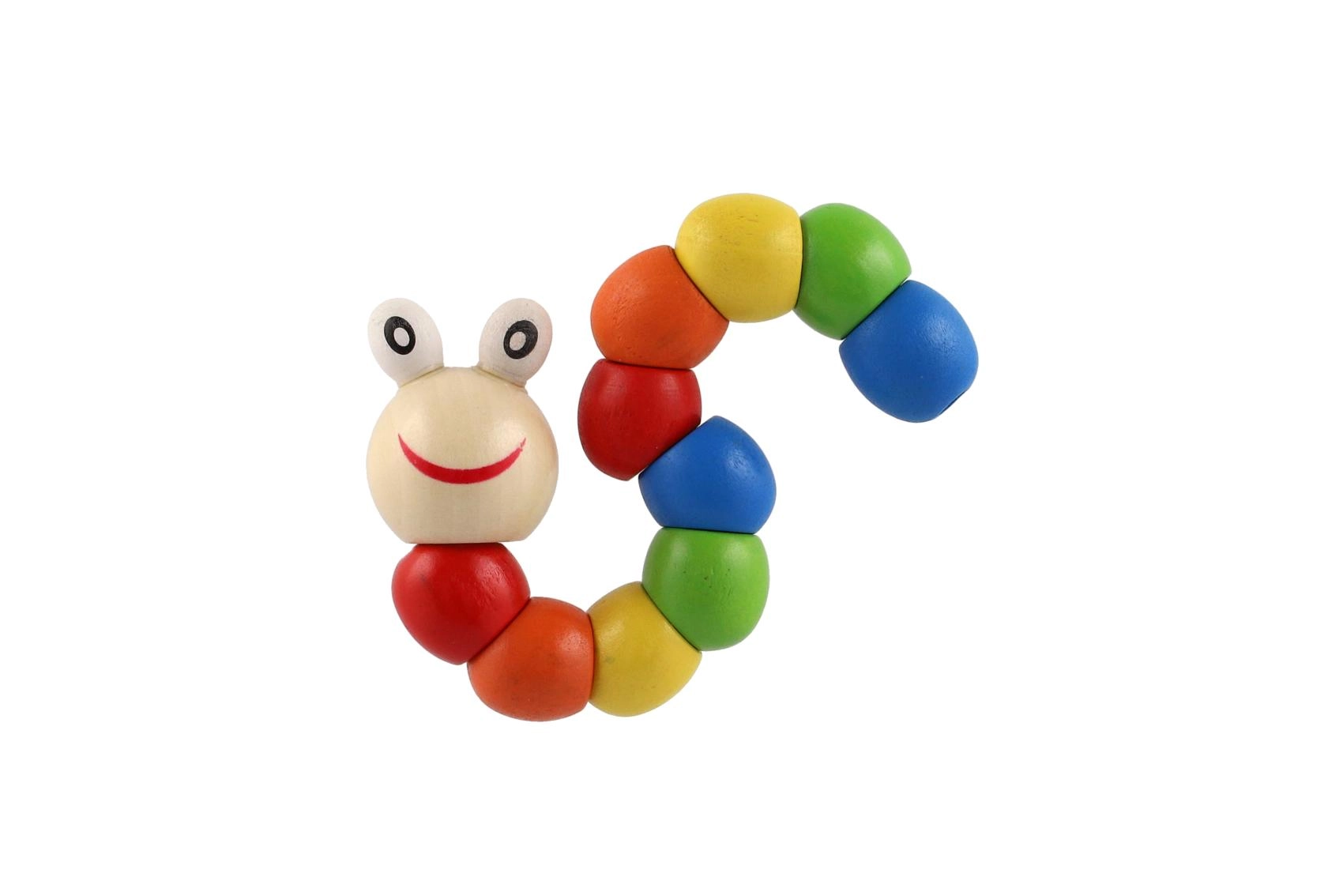 Questo colorato bruco in legno è un classico giocattolo di manipolazione che guida naturalmente i bambini ad allenare la motricità fine, la coordinazione occhio–mano e la creatività. I singoli segmenti sono collegati da uno snodo nascosto, così il giocattolo si piega e si torce con fluidità mantenendo forme di base.