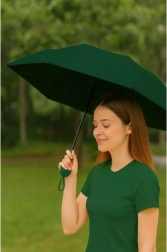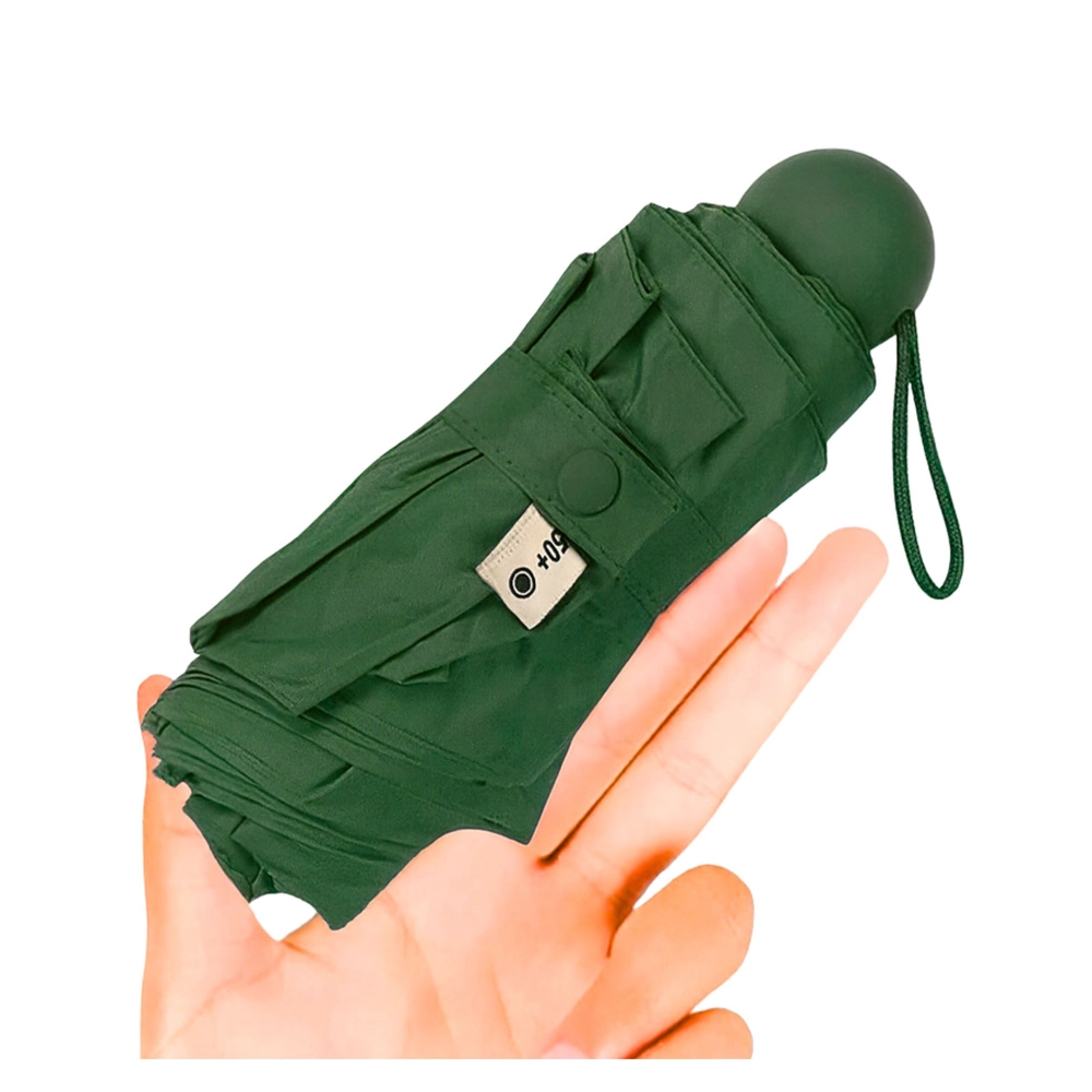 Ombrello leggero e compatto con diametro di 90 cm che offre protezione affidabile dalla pioggia e dal sole. Grazie al filtro UV UPF 50+ protegge la pelle dai raggi nocivi, mentre il poliestere resistente e la struttura robusta garantiscono lunga durata. Il design pieghevole con laccetto e la custodia protettiva rendono questo ombrello verde scuro il compagno ideale per borsa, zaino e valigia da viaggio.