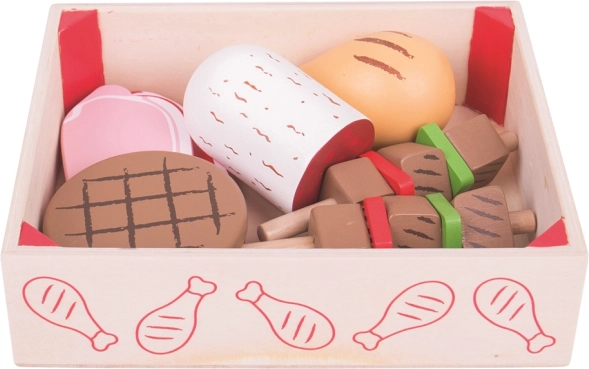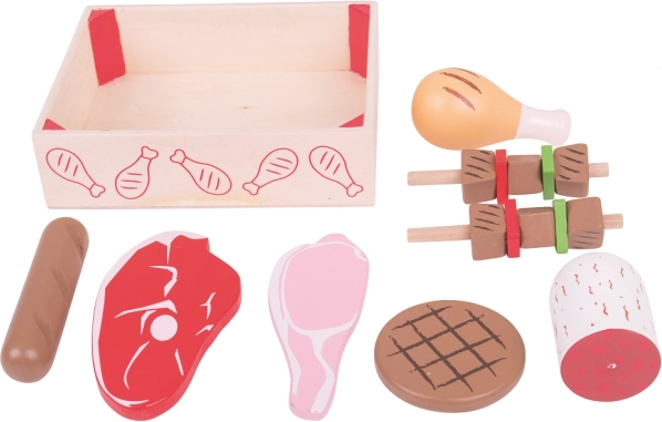 - Set realistico di salumi e carni in legno per cucine giocattolo