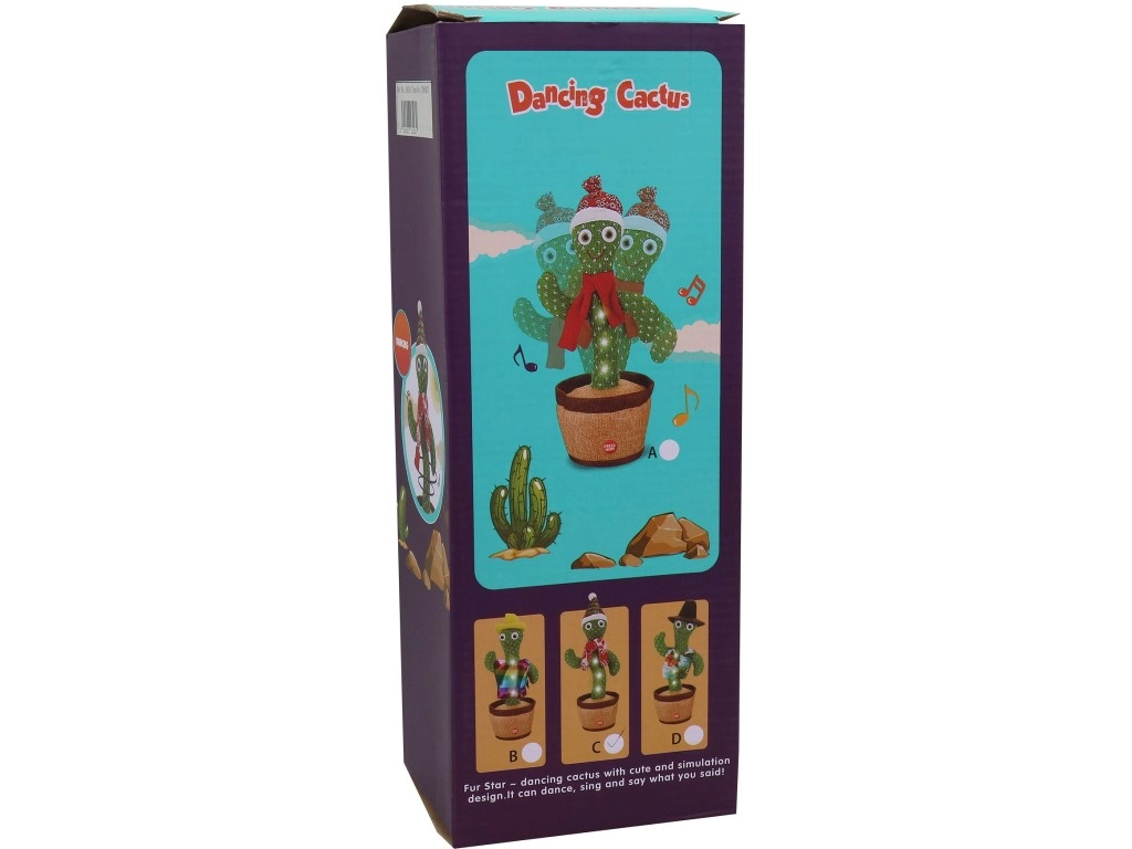 Ravviva qualsiasi stanza con questo cactus danzante con luce, che balla a ritmo, ripete suoni e voce e garantisce tanto divertimento per bambini e adulti. Basta inserire le batterie, impostare su ON e premere il punto indicato.