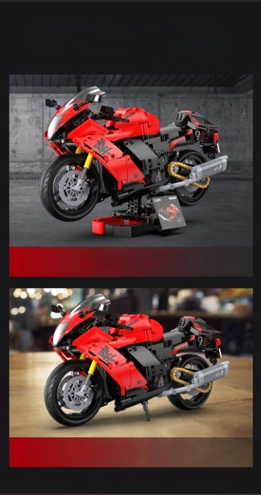 Costruisci la superbike iconica con il set con licenza CaDA – SUZUKI Hayabusa in scala 1:6 composto da 1043 pezzi. Il modello in rosso e nero entusiasma con sospensioni funzionanti, ruota anteriore sterzante, catena, freni a disco e motore trasparente con pistoni mobili. Non manca lo stand con targhetta per un’esposizione d’effetto e una lavorazione dettagliata per un aspetto realistico e una costruzione divertente.