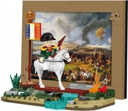 L’elemento centrale è una minifigure dettagliata di Napoleone nella posa tipica in sella a un cavallo bianco – ideale per scene storiche e per la vetrina dei collezionisti.