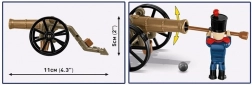 Modello di pezzo da 12 libbre con canna color metallico e grandi ruote a raggi. Consente il posizionamento per la mira e rappresenta fedelmente l’artiglieria napoleonica.