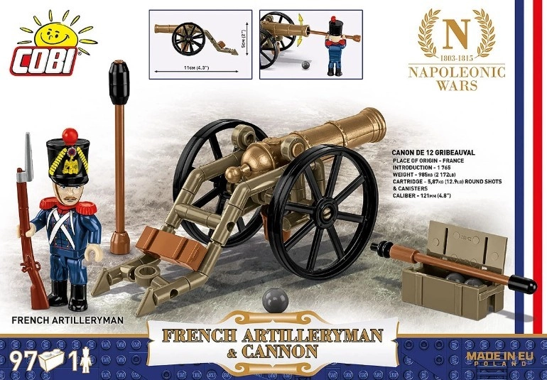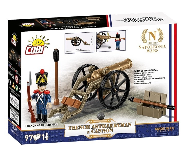 Scopri la potenza dell’artiglieria napoleonica con il modello autentico del cannone da 12 libbre del sistema Gribeauval e la minifigure del cannoniere francese in uniforme blu scuro. Il set porta dettagli realistici, inclusi asta di pulizia, munizioni e cassa in legno, così potrai creare facilmente una scena storica fedele.