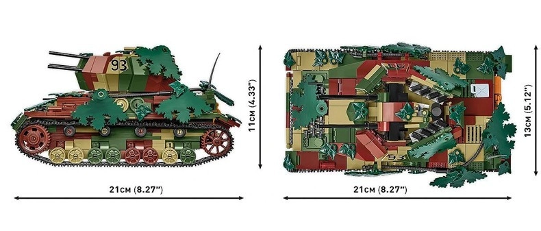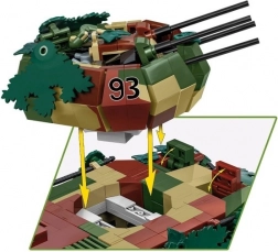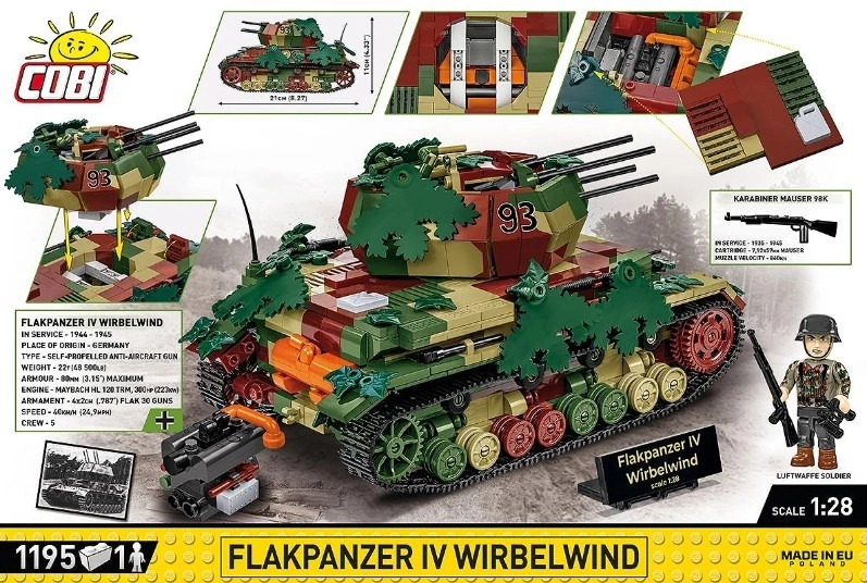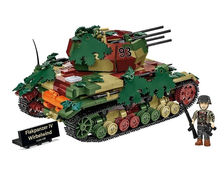 Il Flakpanzer IV Wirbelwind era un semovente antiaereo tedesco della fine della Seconda guerra mondiale, equipaggiato con un cannone quadrinato da 2 cm Flakvierling 38 su scafo PzKpfw IV. Questo set riproduce fedelmente la sua caratteristica torretta aperta, l’armamento a fuoco rapido e la mimetica tardo-bellica autentica con fogliame per un impatto visivo ancora maggiore, sia in esposizione che nel gioco.