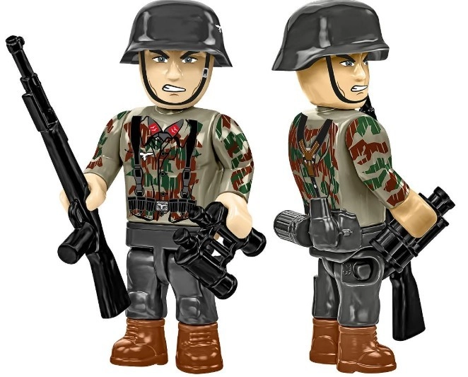 Inclusa una minifigure dettagliata del soldato con accessori e una targhetta nera del modello per una presentazione d’effetto su scaffale.